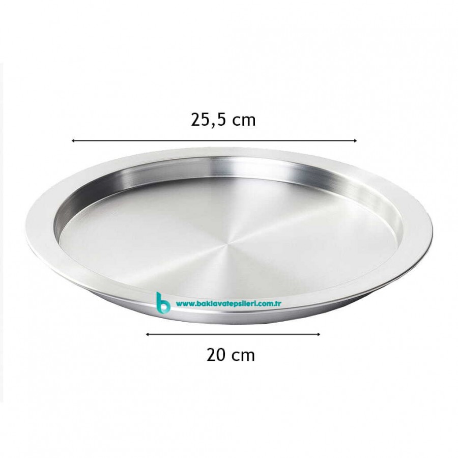 20 cm ölçüsündeki bu künefe tepsisi, bireysel porsiyondan çıkıp paylaşımı merkeze alan sunumlar için tercih edilir. Künefeciler açısından bu ölçü, iki kişilik servislerde ideal dengeyi kurar. Pişirme sürecinde künefenin tamamı eşit ısı alır, dilimleme sırasında taban yapısı formunu korur. Servis aşamasında aynı ürünün künefe tabağı olarak kullanılması, masada ek tabak karmaşasını ortadan kaldırır.
